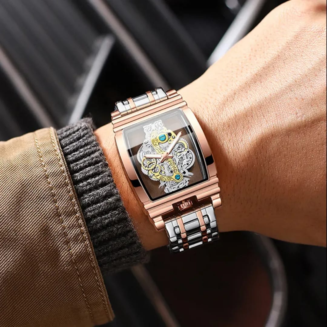 Brand Square Luxury Men Gold Tourbillon Skeleton Analog Quartz Wrist Watches for Men Wholesale