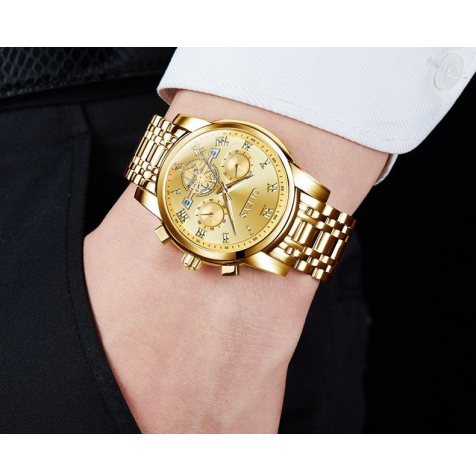 This Olevs men's fashion luxury wristwatch is designed with a round shape dial. The inner dial of the watch is so gorgeous in looks. It shows time accurately with Roman numbering clock hour dial. This watch is suitable for wear in both casual and formal conditions. It has stainless steel material strap which adds more charm to the watch. Also, it comes in various colors.