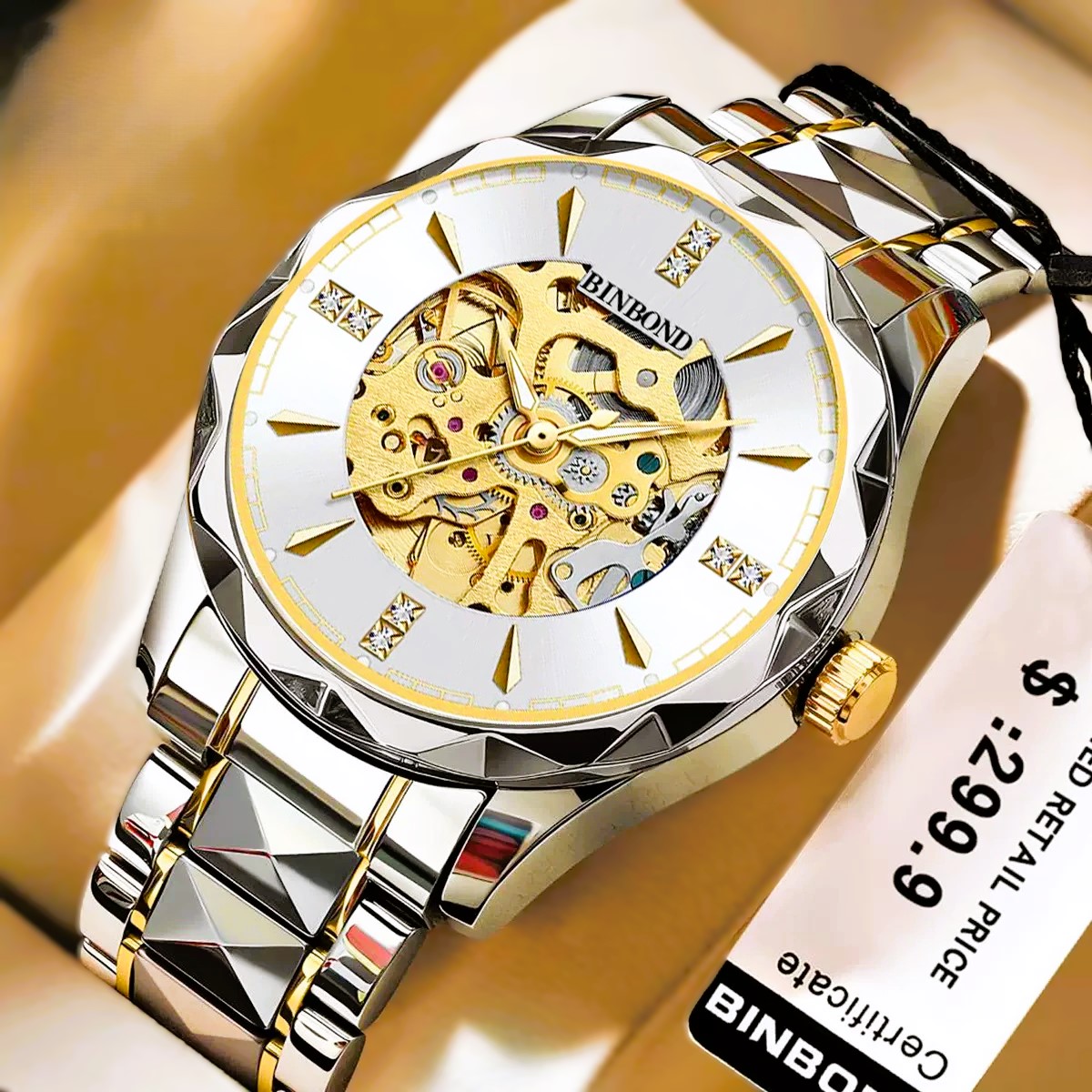 New Binbond J5059 Luxury Watch For Men Stainless Steel Waterproof Business Sport Wristwatches- Silver & Golden